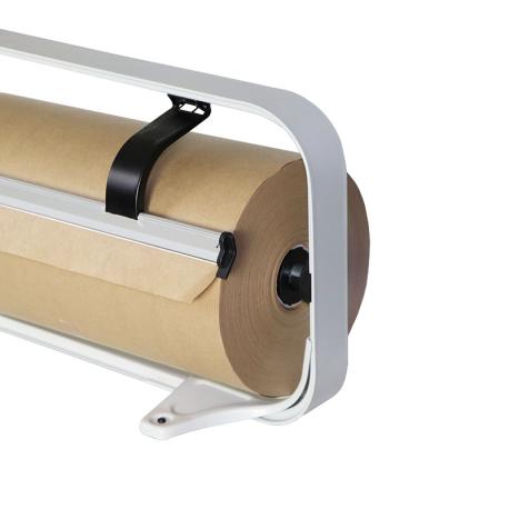 Deze papier- en foliedispenser is werkelijk 2-in-1. Dankzij het handige kartelmes is het namelijk perfect om zowel papier als folie netjes op maat te snijden. Denk aan inpakpapier, kraftpapier, plastic folie of aluminiumfolie. Dit tafelmodel bevat handige beugels waarmee je hem gemakkelijk op de inpaktafel of balie kan plaatsen.